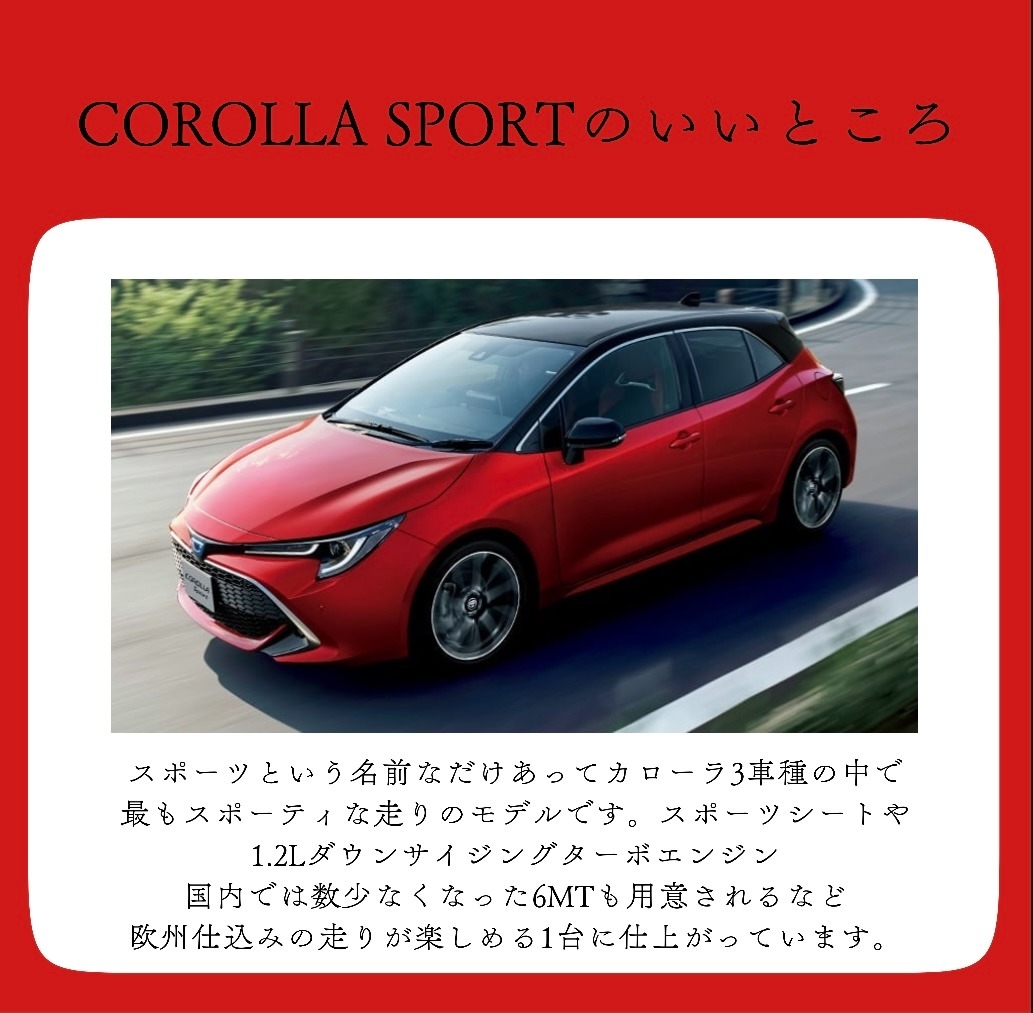 カローラ”スポーツ”なので走る楽しさをメインとしたお車になっております