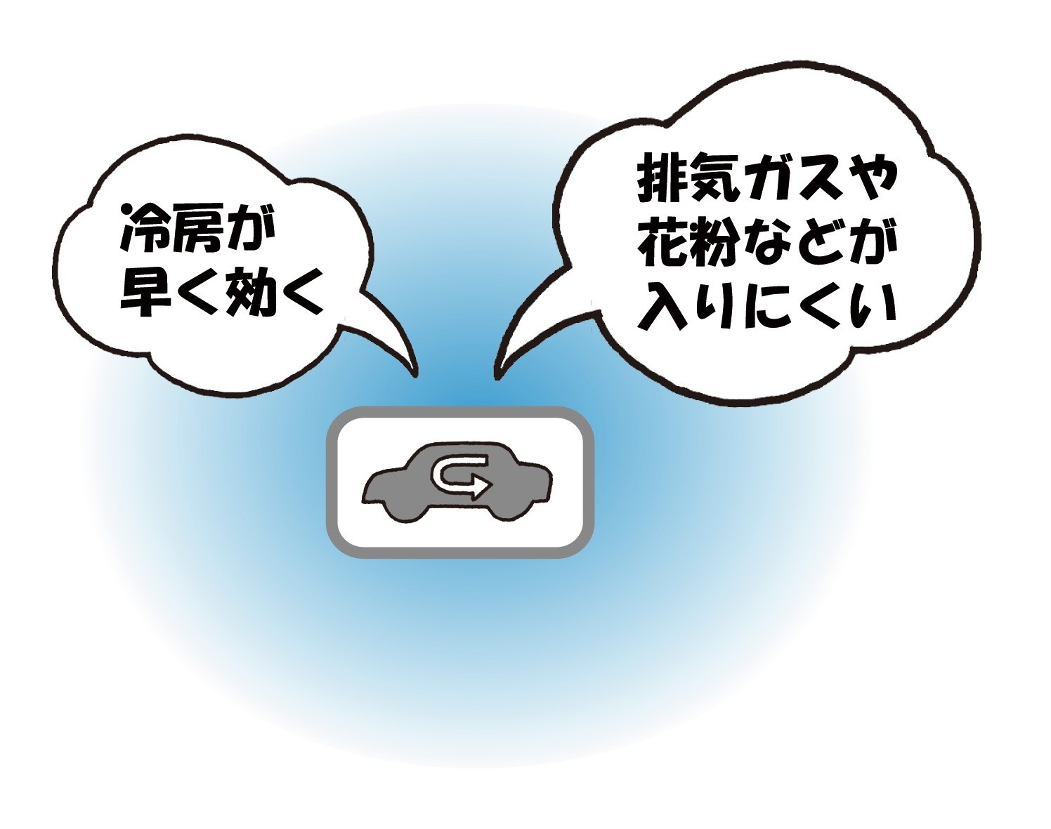 車内の空気を循環させたいときに
