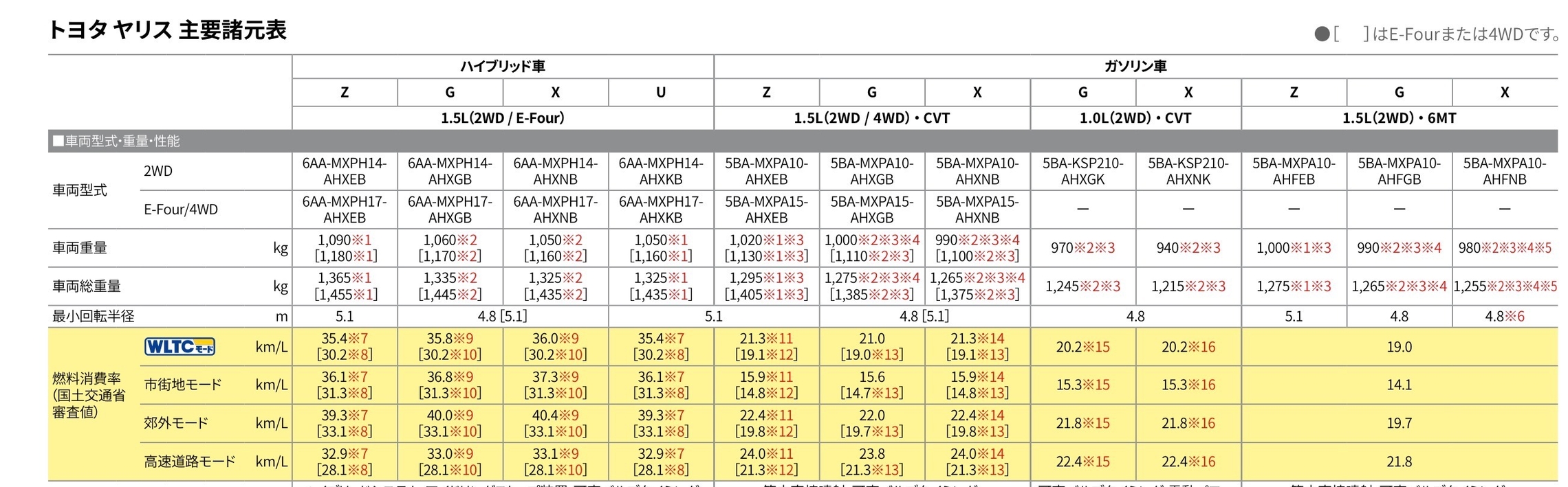 カタログの燃費を見るときに記載されてる