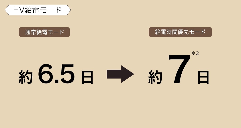 給電時間優先モードでは約7日の電力を供給可能です。