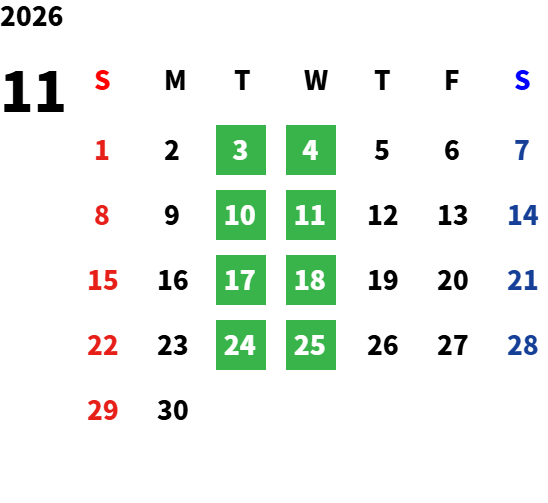 営業日カレンダー